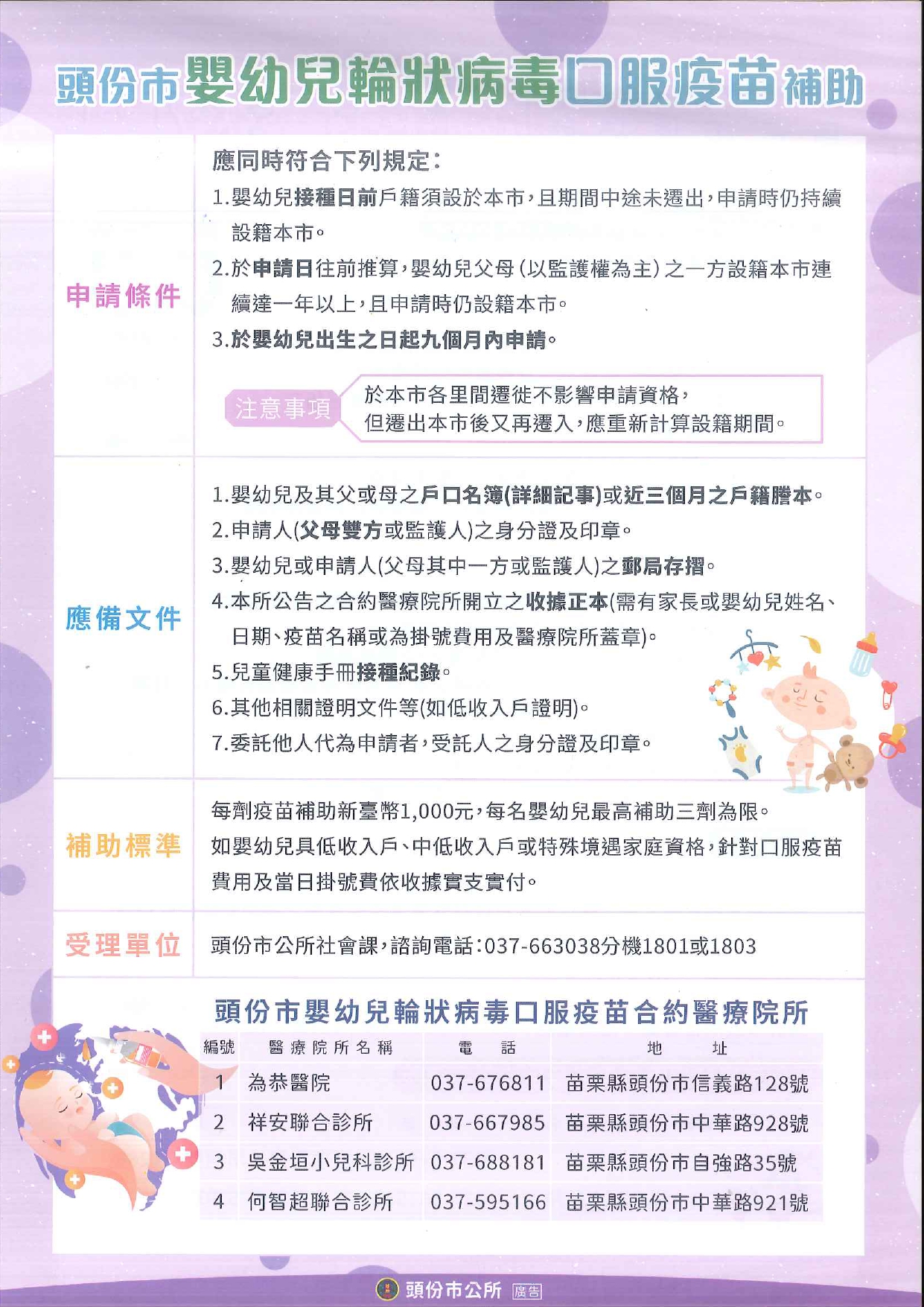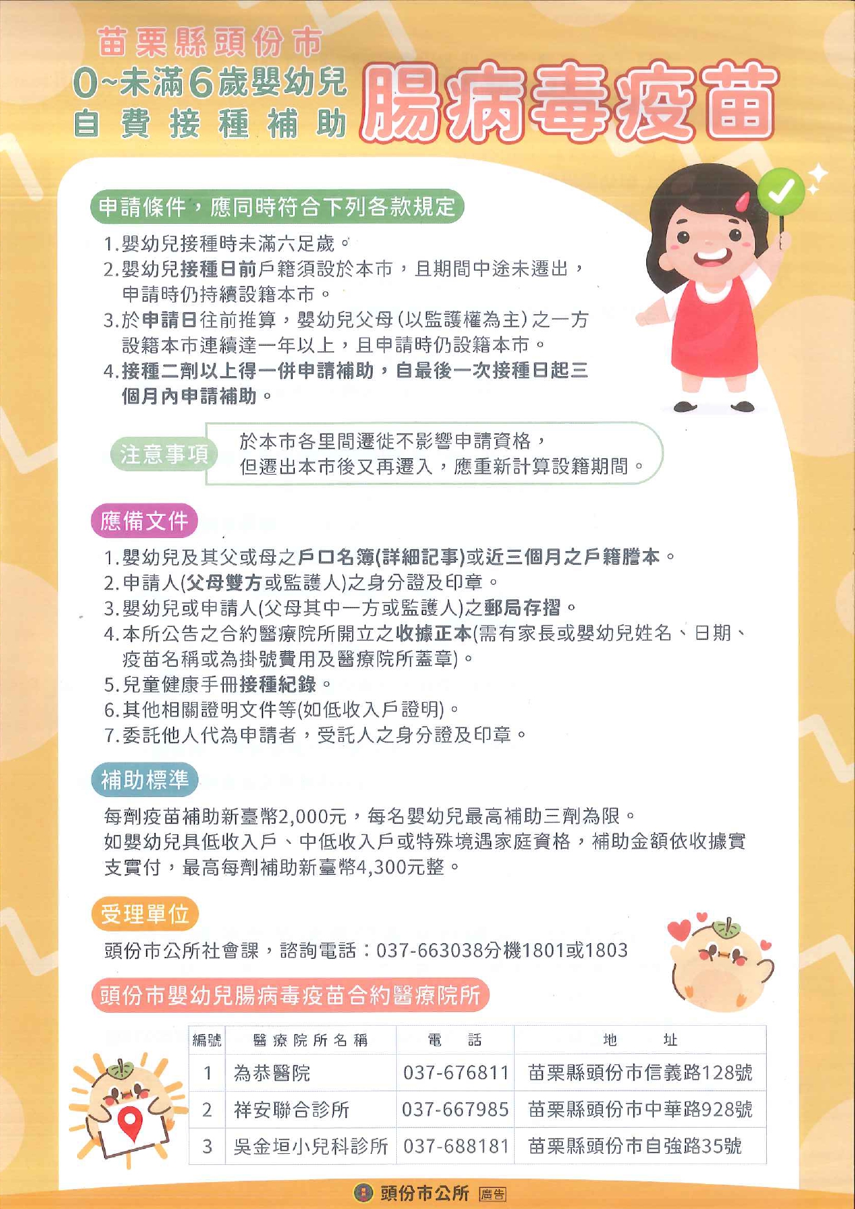 【最新消息】腸病毒、輪狀病毒疫苗補助